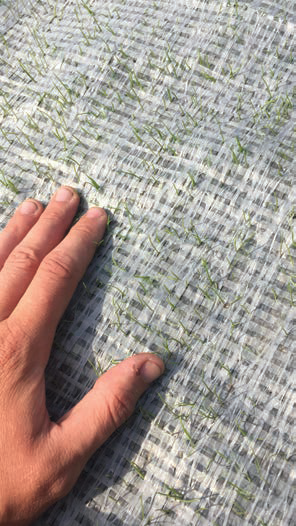 Например, очень интересная технология, – тент, покрывающий траву, со встроенными лампами. В нем находятся форсунки, распыляющие жидкость и увлажняющие растения. К тенту подведен газ СО2, который стимулирует их рост и развитие, что способствует быстрому восстановлению газона после мероприятий.